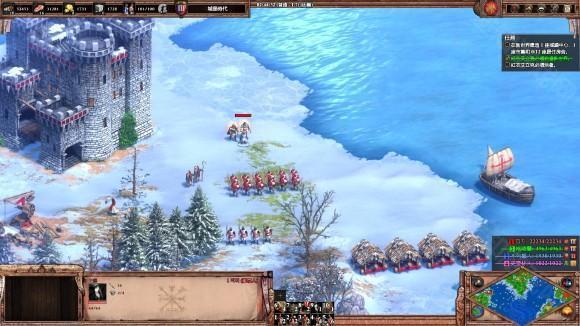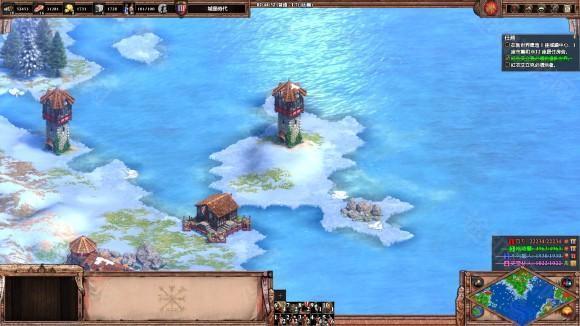 3、升城堡时代后在格陵兰东北角 (1点钟方向) 登陆, 找到一只企鹅, 盖一个城堡稳住阵脚, 然后造冲车和骑士消灭格陵兰的城堡, 军营和TC, 他投降后会变为盟友, 并且将海蠕虫的地区在地图上显示出来。