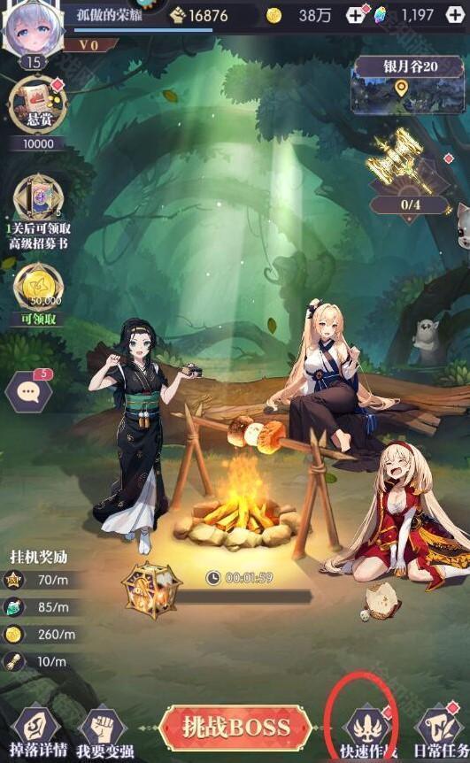 5、升级后还可以解锁快速作战玩法,如下图位置;