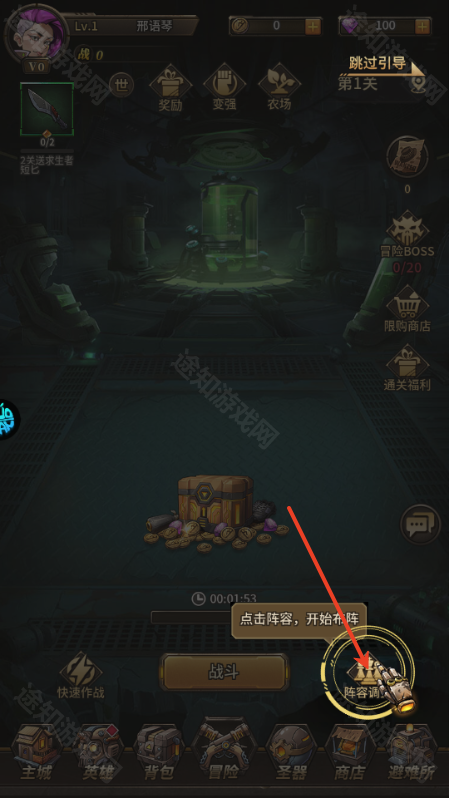 4、获得新英雄后,开始挑战关卡吧,先开始布阵;