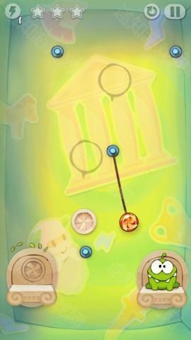 第二步:在等绳子甩到右边怪物嘴的时候就可以割断绳子了。