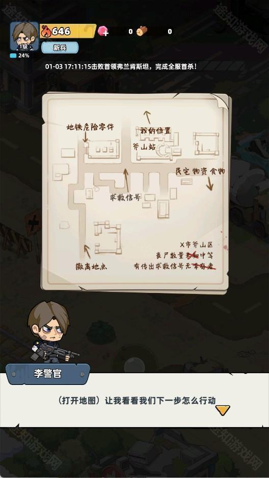 3、打开地图查看任务目标(如地铁零件、求救信号),规划移动路线避免丧尸围堵。