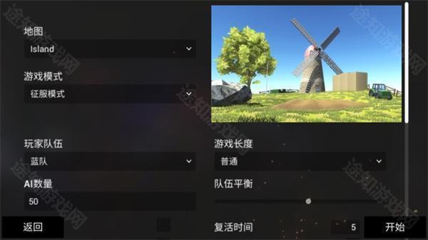 地图——选择战斗地图,目前可以选择战舰冲突、小镇、草地、战壕冲锋等。