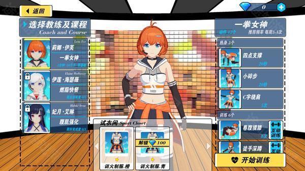 老婆养成:游戏中玩家可以通过完成健身任务来进行角色养成,解锁不同的教练、服装和动作。