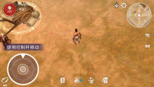 1、进入游戏,一下子进入一个有着广袤黄土地的世界。手指按住左边的操纵杆,通过拖动控制人物移动~