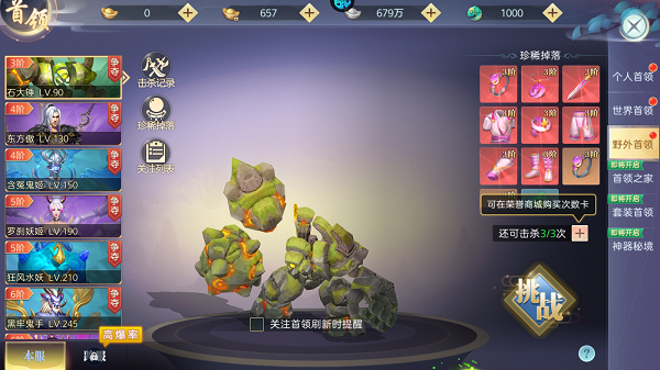 每日挑战野外首领可获得红色极品装备,千万不要错过!