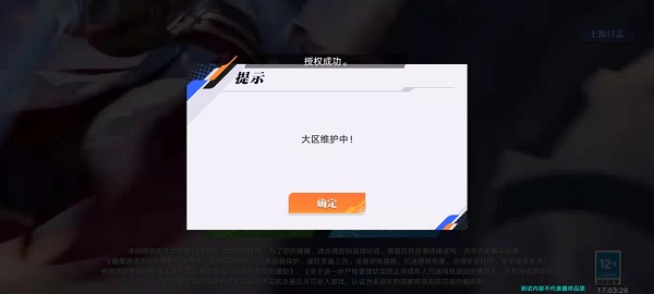 大区维护中的意思是目前游戏正在内测中,只有有测试资格账号的玩家才能进入游戏,也就是说,只有微信或者是QQ已经抢到内测资格的玩家账号才能进行体验,如果没有资格的账号去进行登录的话,就会出现这个大全维护中的弹窗,无法进入游戏。